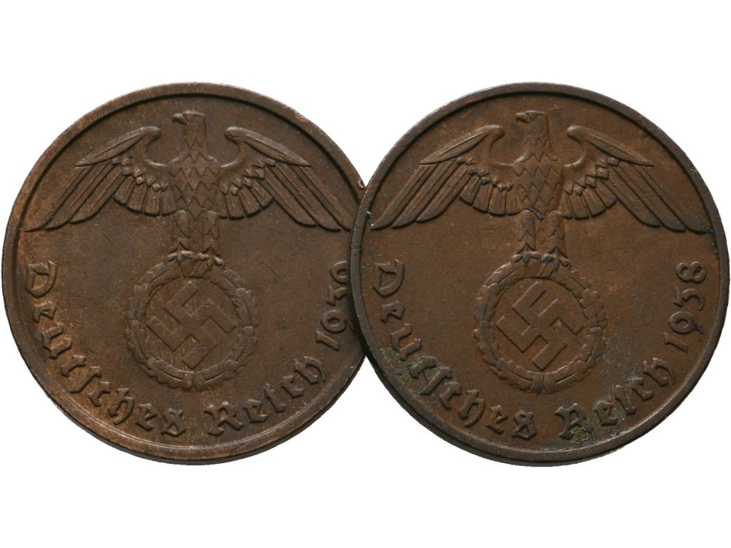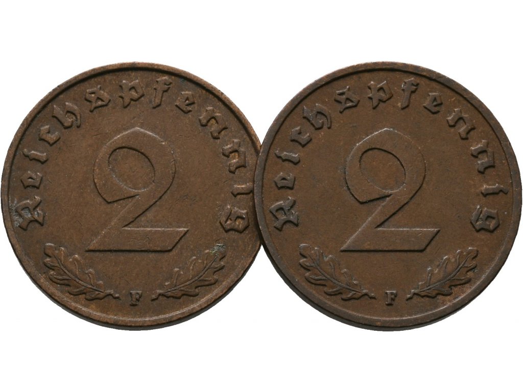 III. říše, 2 Pfennig 1938 F a 1939 F, lot 2 ks