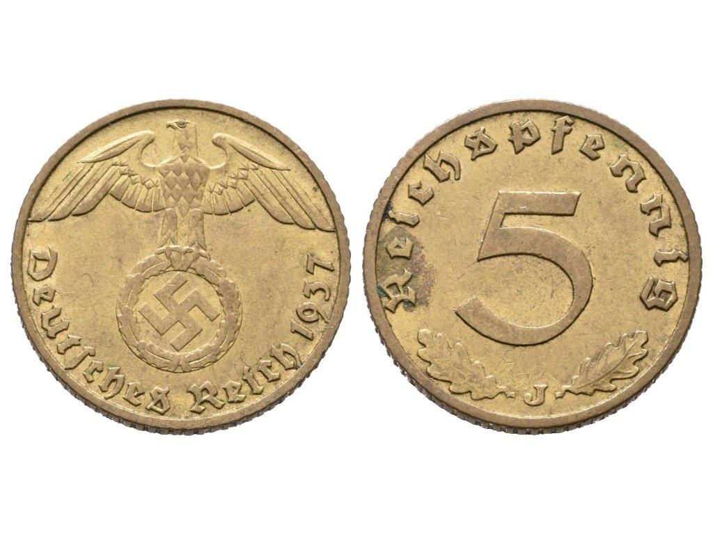 III. říše, 5 Pfennig 1937 J
