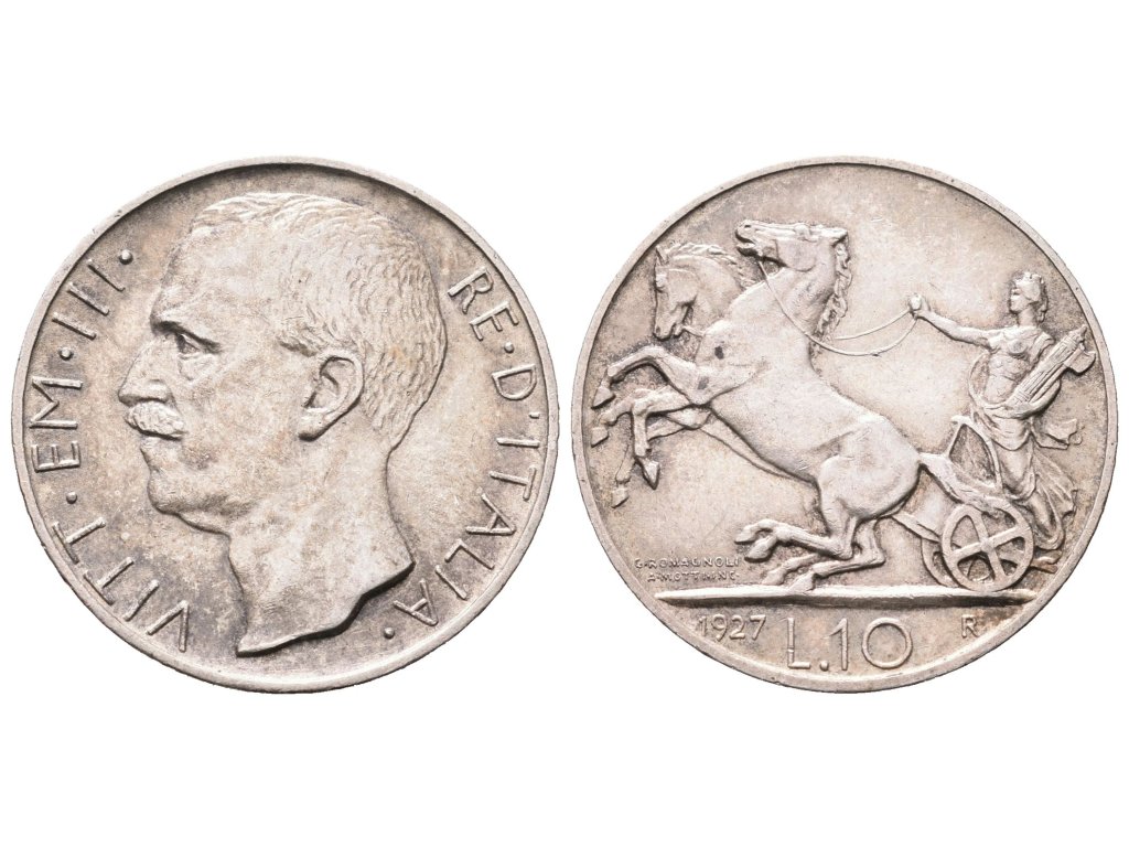 Itálie, 10 Lira 1927 R