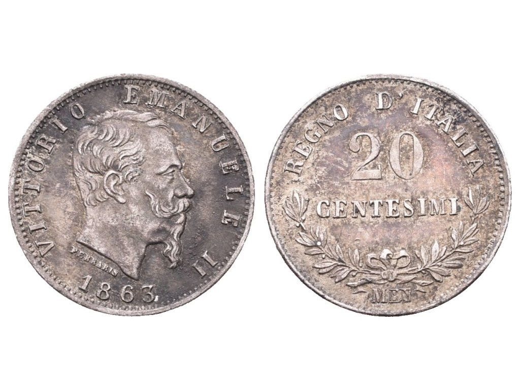 Itálie, 20 Centesimo 1863 M/BN