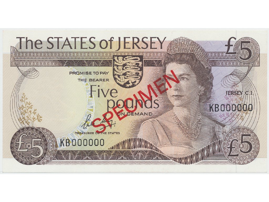 Jersey, 5 Pounds (1976-1988), bankovní vzor, přetisk SPECIMEN, P.12bs