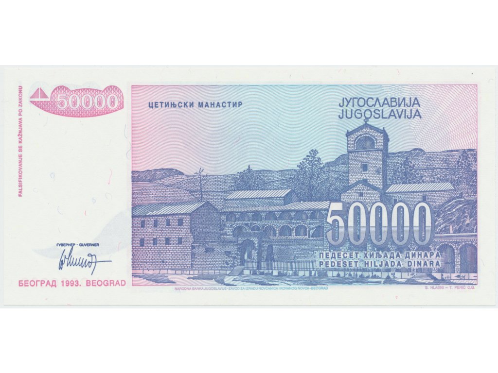 Jugoslávie, 50.000 Dinara 1993, anulát AA 0000000, P.130