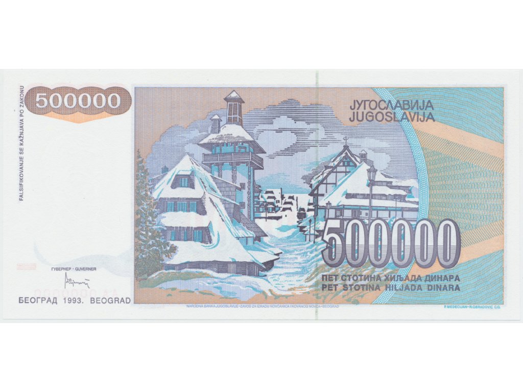 Jugoslávie, 500.000 Dinara 1993, anulát AA 0000000, P.119