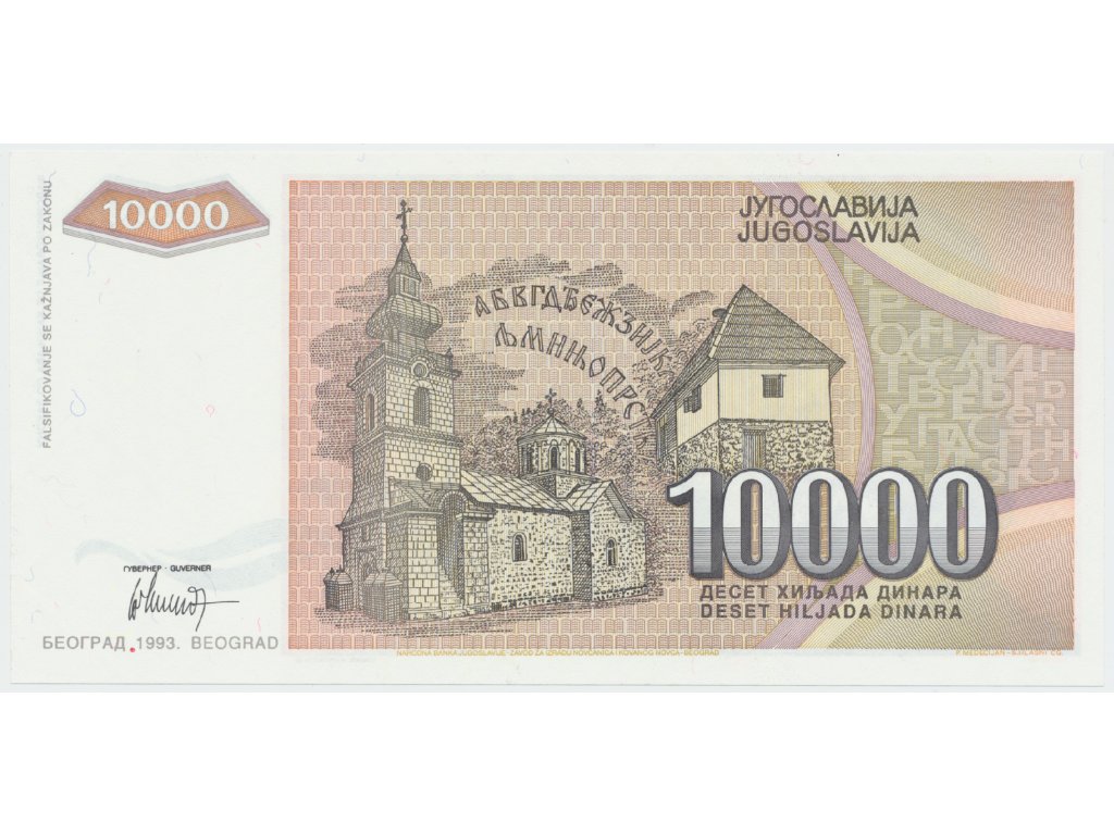 Jugoslávie, 10.000 Dinara 1993, nedokončená bez série a čísla, P.129