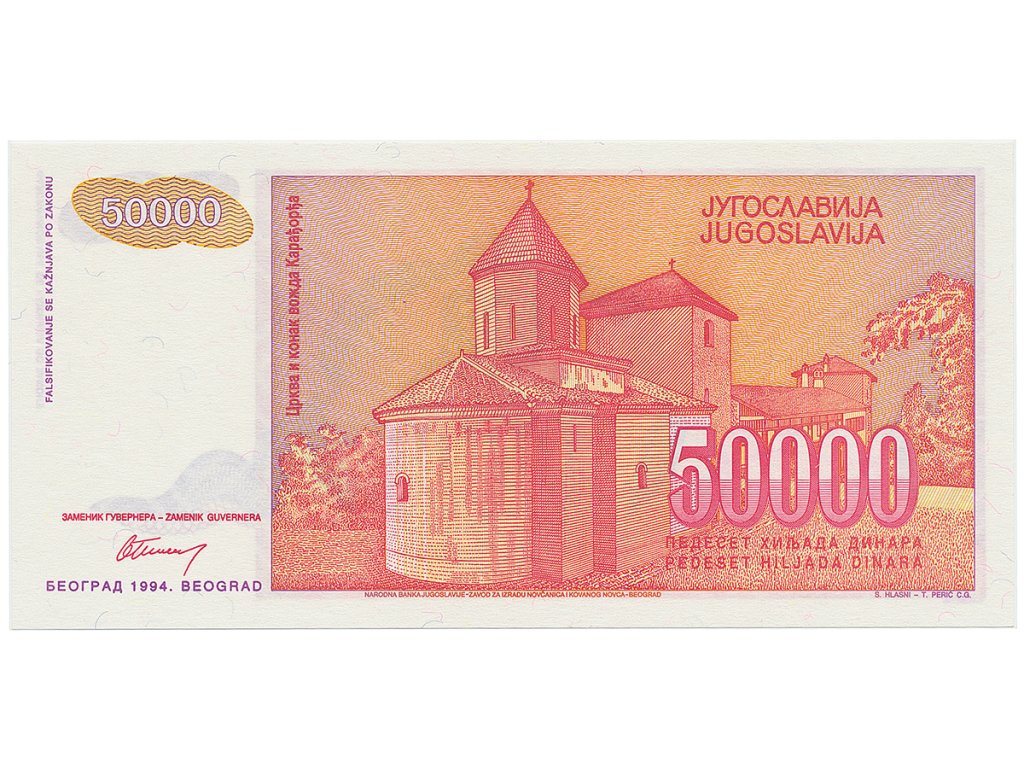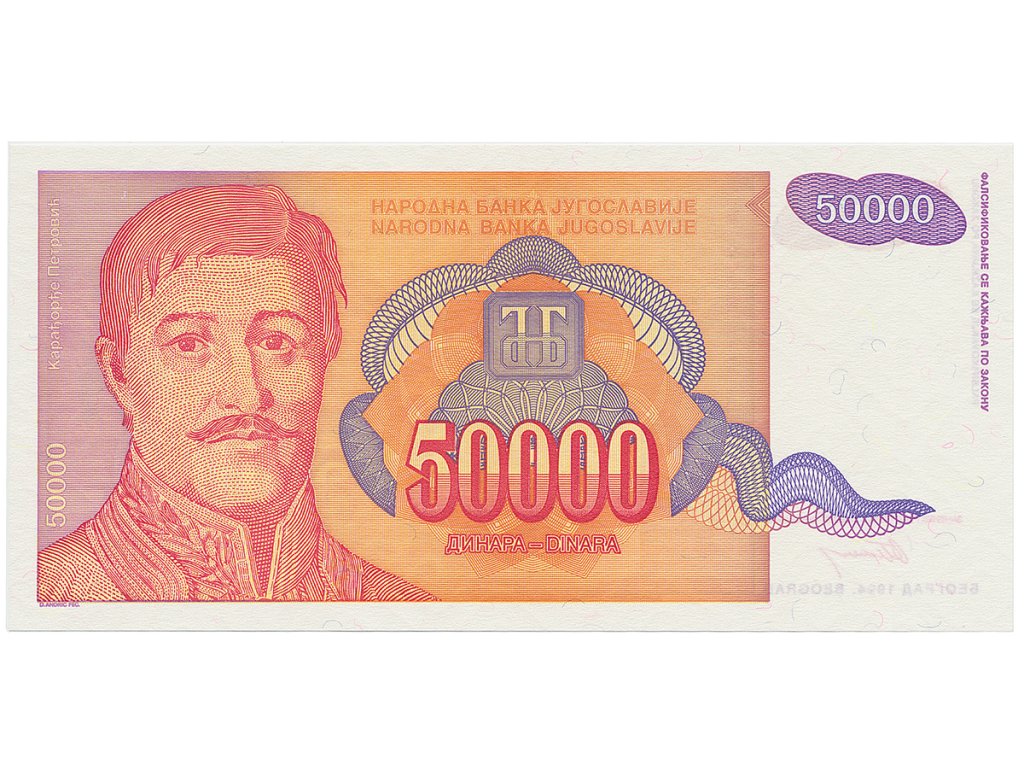 Jugoslávie, 50.000 Dinara 1994, nedokončená bez série a čísla, P.142