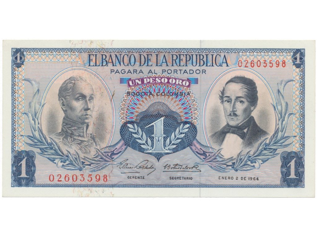 Kolumbie, 1 Peso Oro 1961~1964, P.404b