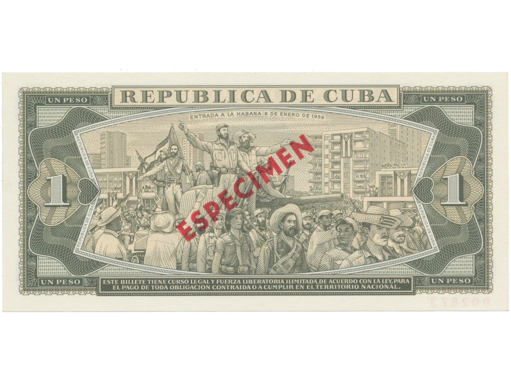 Kuba, 1 Peso 1979, tisk STC Praha, anulát - ESPECIMEN, bankovní vzor, P.102bs4