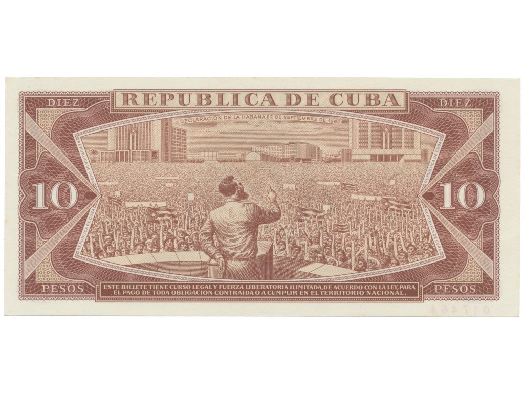 Kuba, 10 Pesos 1967, tisk STC Praha, anulát - SPECIMEN, bankovní vzor, P.104as