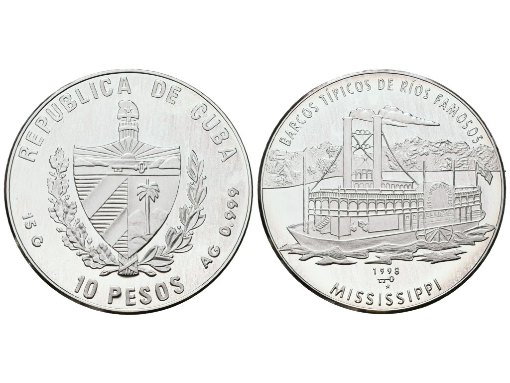 Kuba, 10 Pesos 1998 - Člun na Mississippi
