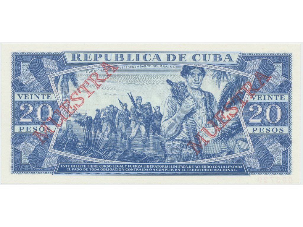 Kuba, 20 Pesos 1988, tisk STC Praha, anulát - 2x MUESTRA, bankovní vzor, P.105ds