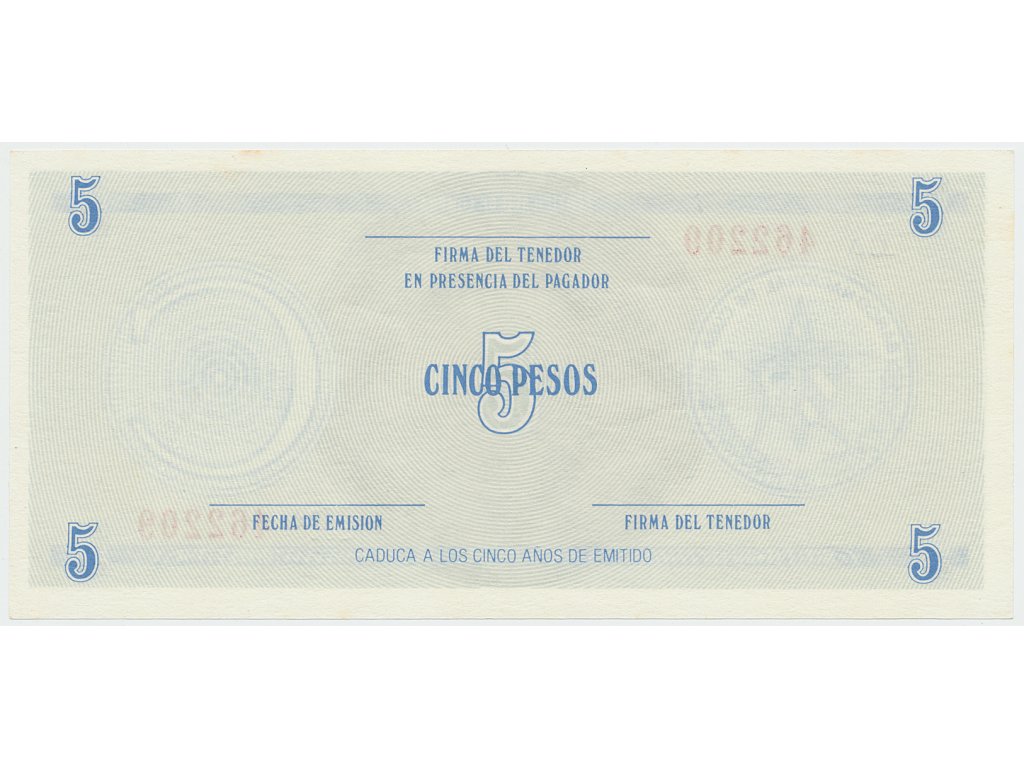 Kuba, 5 Pesos b.d., série C - 1. vydání, červené číslování, P.FX13a