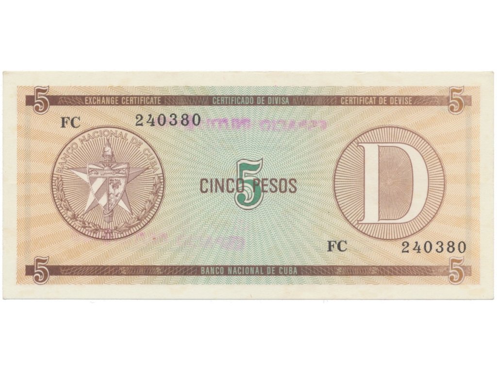 Kuba, 5 Pesos b.d., série D, P.FX29