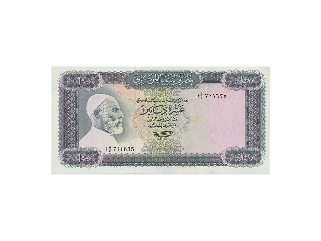 Libye, 10 Dinars (1971), P.37a, vzácná varianta