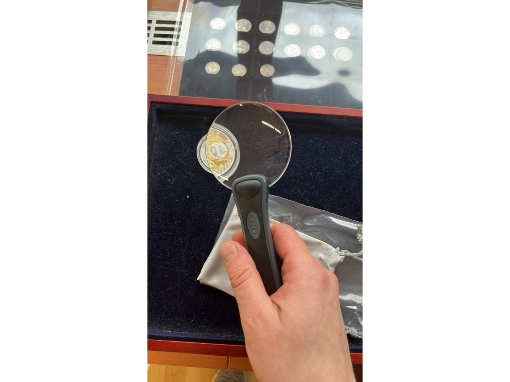 Průměr čočky: 7,5 cm Zvětšení 2,5x, napájení na baterie, 3x knoflíková baterie SR 54 dle normy IEC