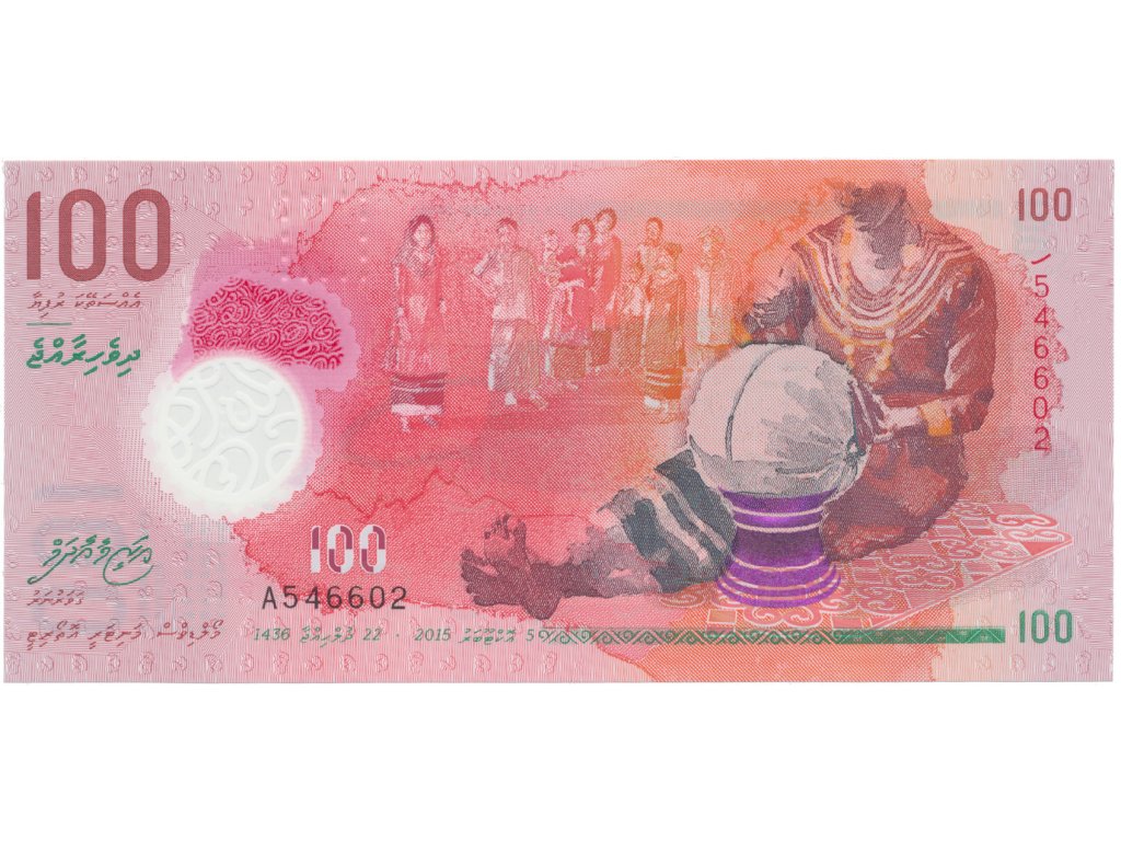 Maledivy, 100 Rufiyaa 2015, plastová, P.29a
