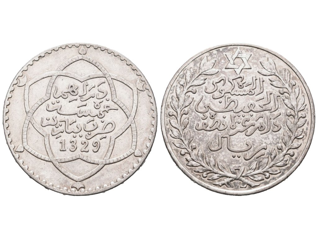 Maroko, 5 Dirham AH 1929 (AD 1911)