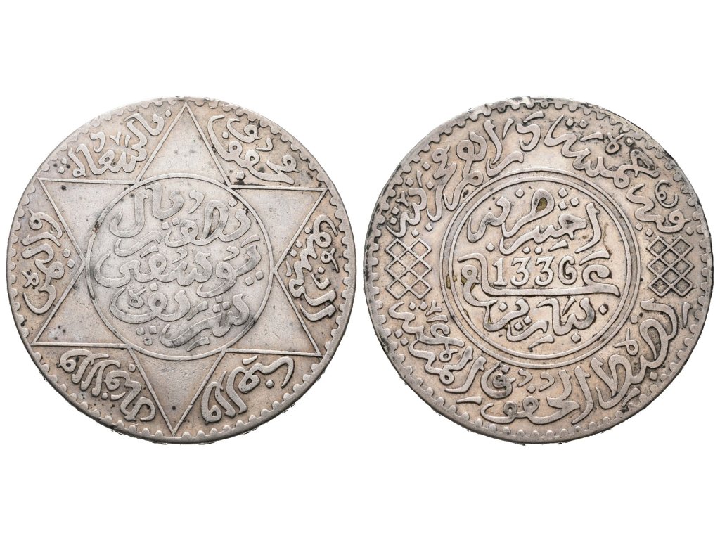 Maroko, 5 Dirham AH 1936 (AD 1918)