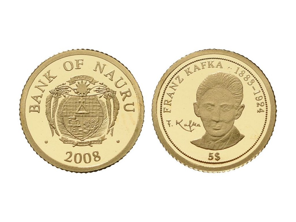 Nauru, zlatý 5 Dollars 2008 - Franz Kafka