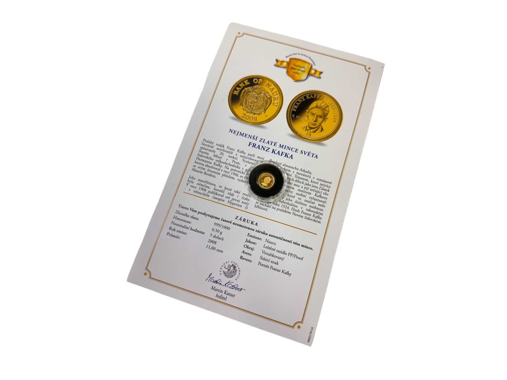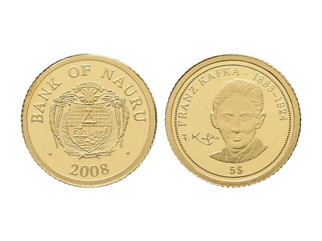 Nauru, zlatý 5 Dollars 2008 - Franz Kafka