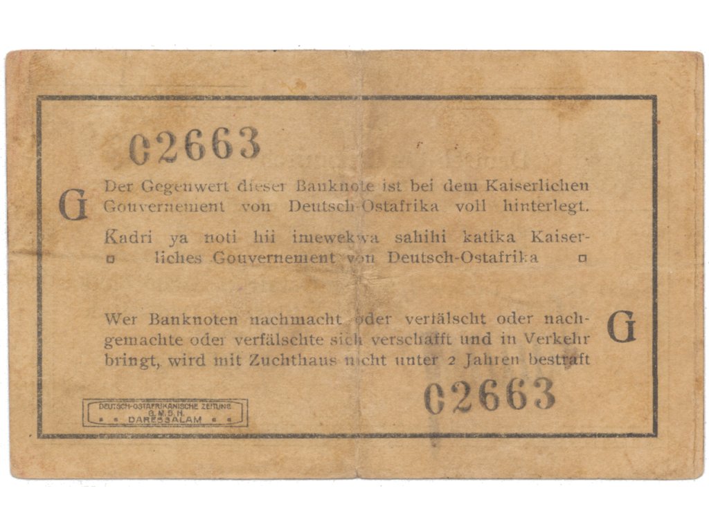 Německá Východní Afrika, 1 Rupie 1. 11. 1915, série G, R.918e