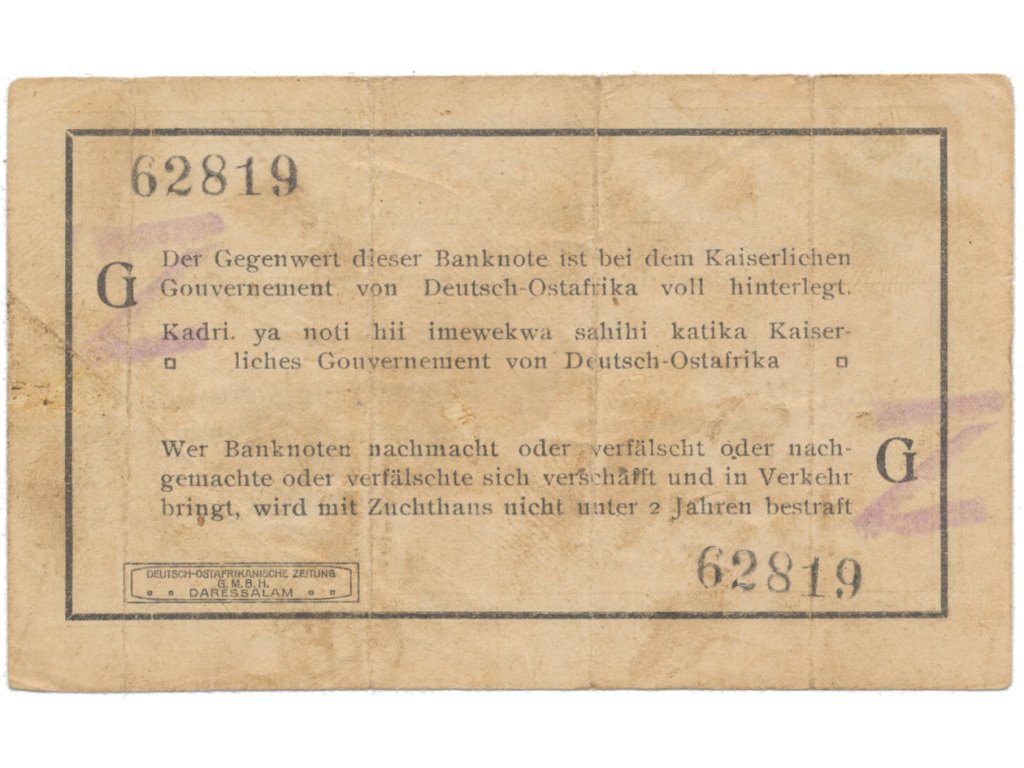 Německá Východní Afrika, 1 Rupie 1. 11. 1915, série G, vzácný podpis, R.918d