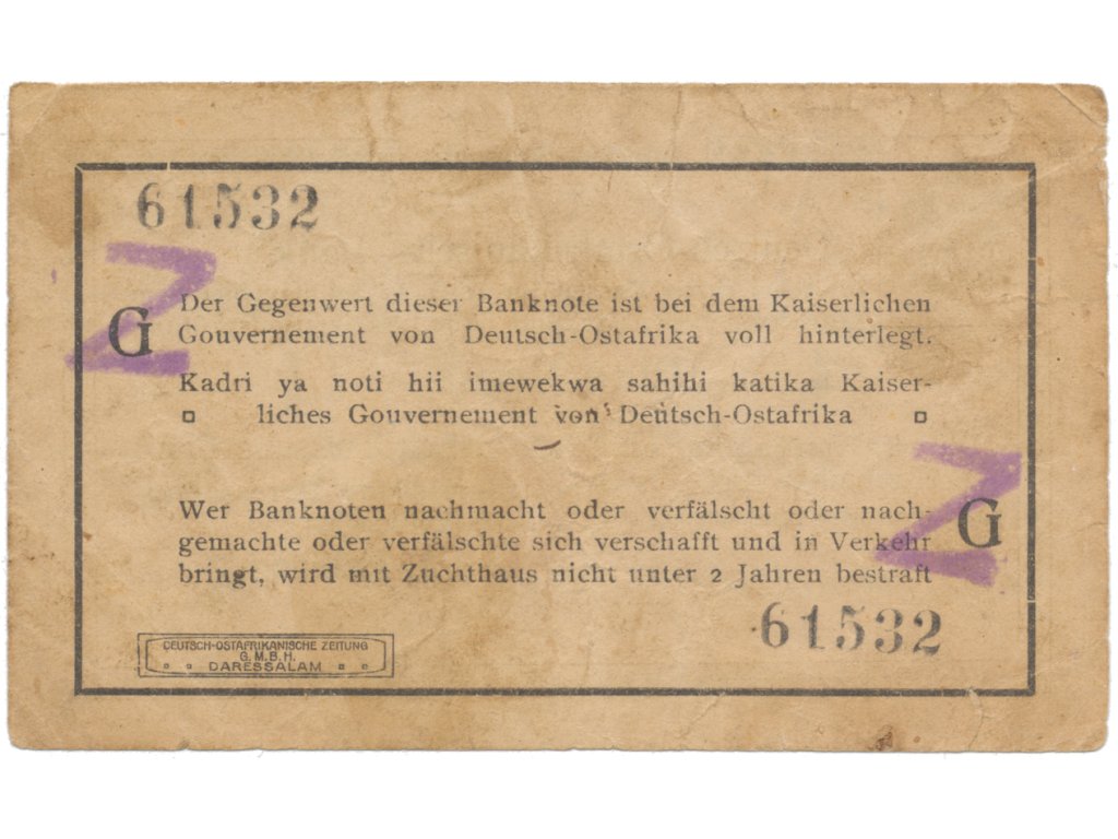Německá Východní Afrika, 1 Rupie 1. 11. 1915, série G, vzácný podpis, R.918d