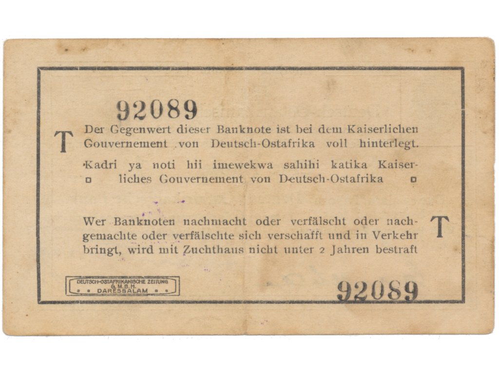 Německá Východní Afrika, 1 Rupie 1. 11. 1915, série T, R.916m