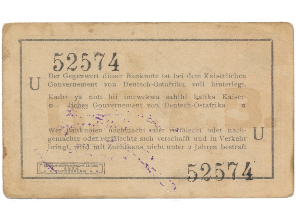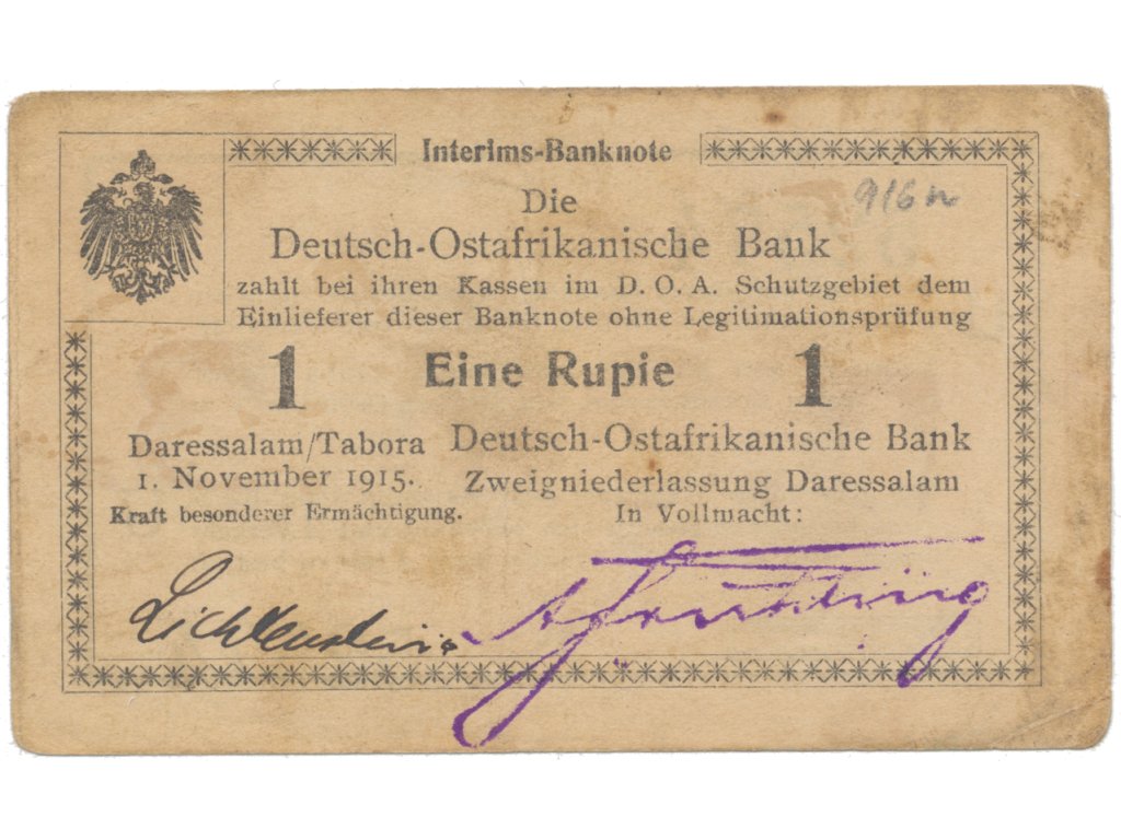 Německá Východní Afrika, 1 Rupie 1. 11. 1915, série U, vzácný podpis, R.916n