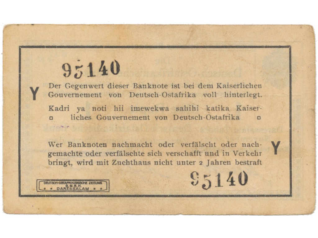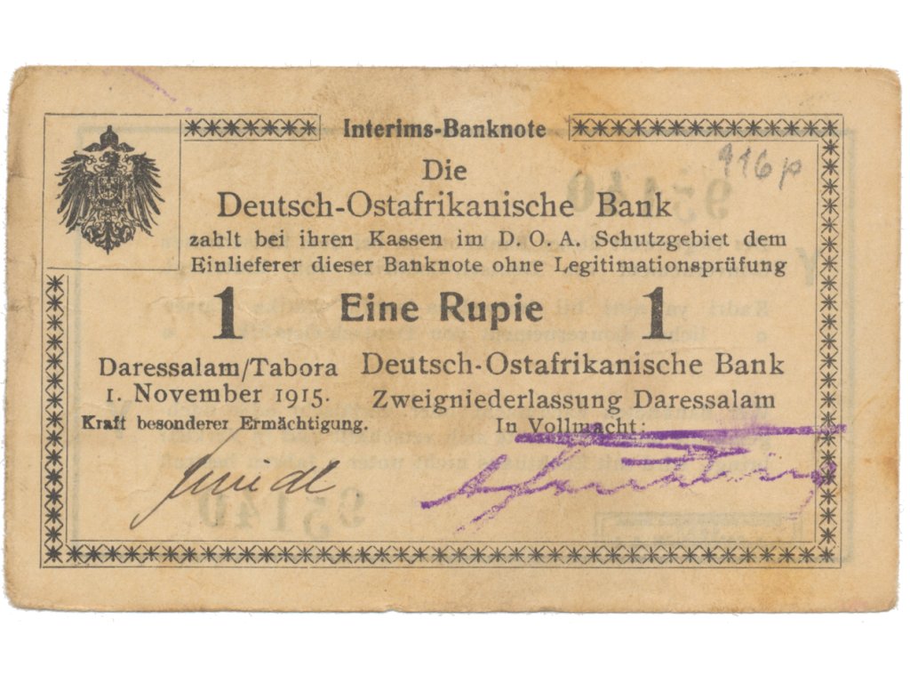 Německá Východní Afrika, 1 Rupie 1. 11. 1915, série Y, vzácnější podpis, R.916p