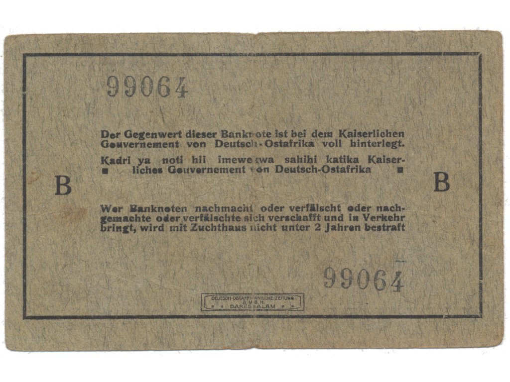 Německá Východní Afrika, 5 Rupien 15. 8. 1915, série B, R.910g