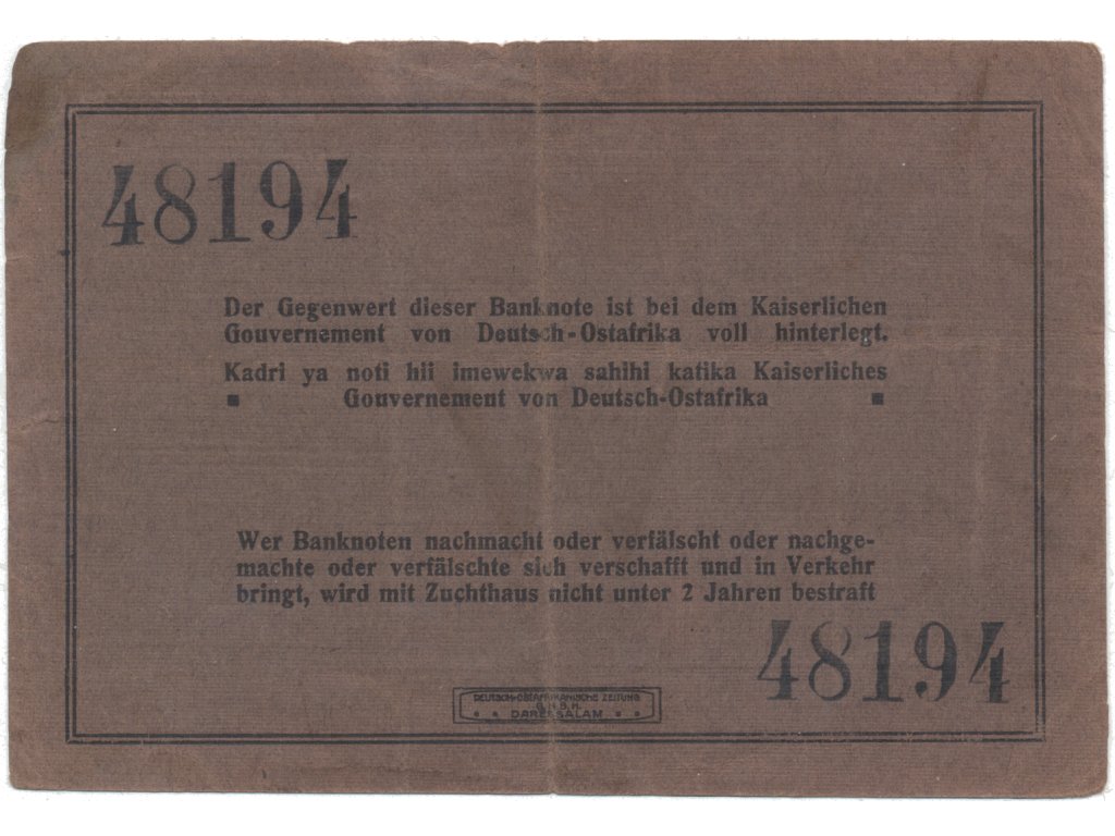 Německá Východní Afrika, 10 Rupien 1. 10. 1915, R.912a, varianta číslovače