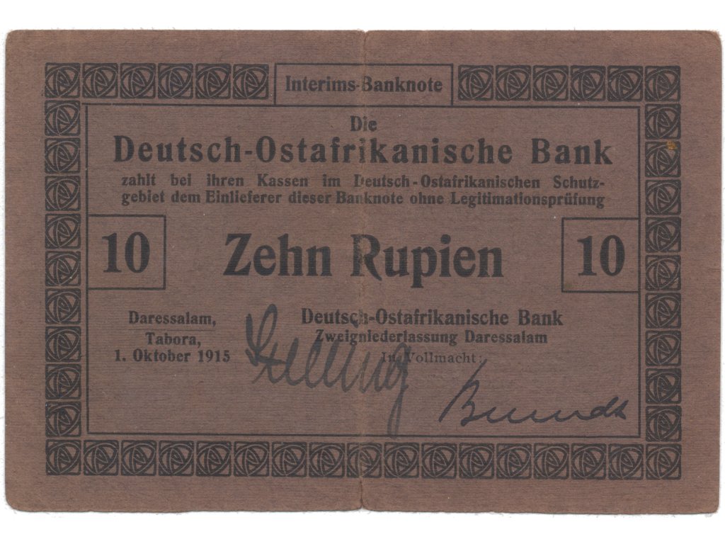 Německá Východní Afrika, 10 Rupien 1. 10. 1915, R.912a, jiné podpisy