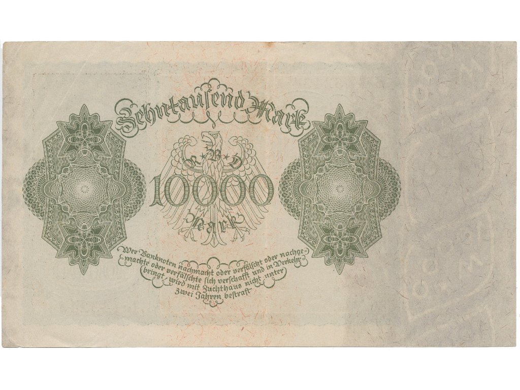 Německo, 10.000 Mark 1922, velký formát, zjednodušený obraz na Rv., Ro.68b