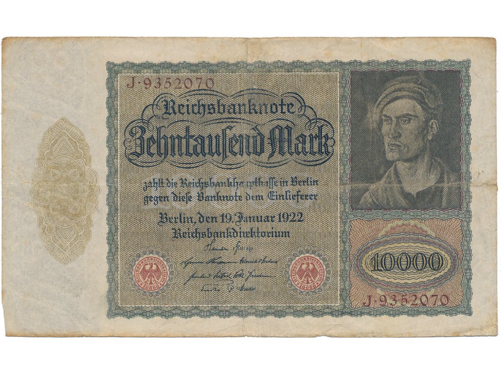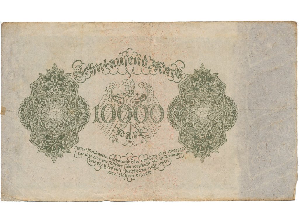 Německo, 10.000 Mark 1922, velký formát, zjednodušený obraz na Rv., Ro.68b
