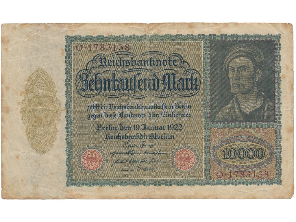 Německo, 10.000 Mark 1922, velký formát, zjednodušený obraz na Rv., Ro.68b