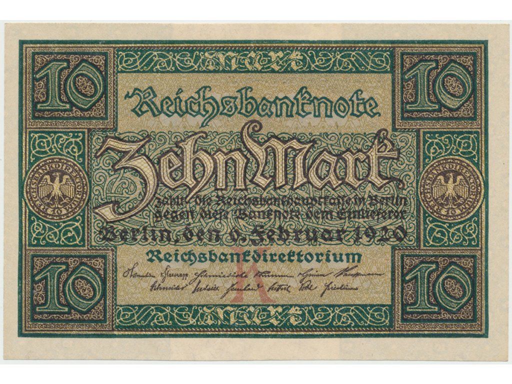 Německo, 10 Mark 1920, 7-místný číslovač, Ro.63a