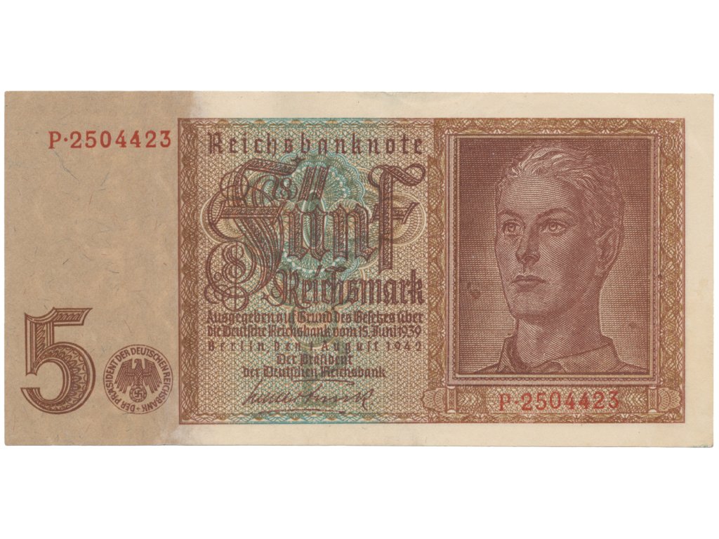 Německo, 5 Reichsmark 1942, 7-místný číslovač, Hej.D1a