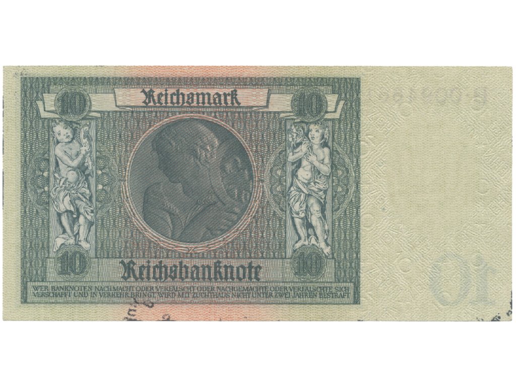 Německo, 10 Reichsmark 1929, válečná s průběžným vodotiskem, hnědý číslovač, Hej.D2d