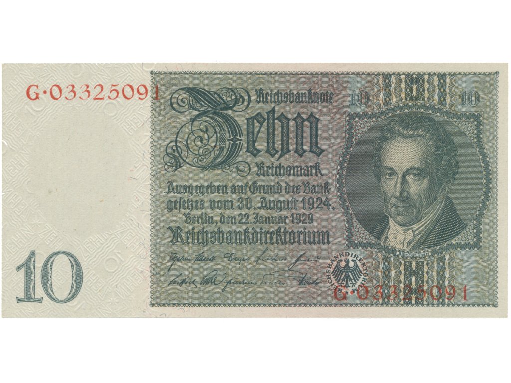Německo, 10 Reichsmark 1929, válečná s průběžným vodotiskem, Hej.D2d