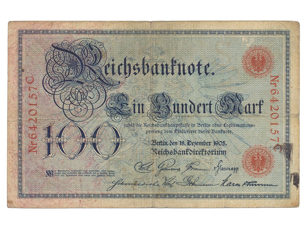 Německo, 100 Mark 1905, číslovač 29 mm, Ro.23b