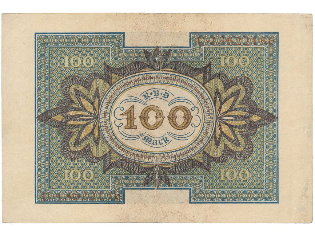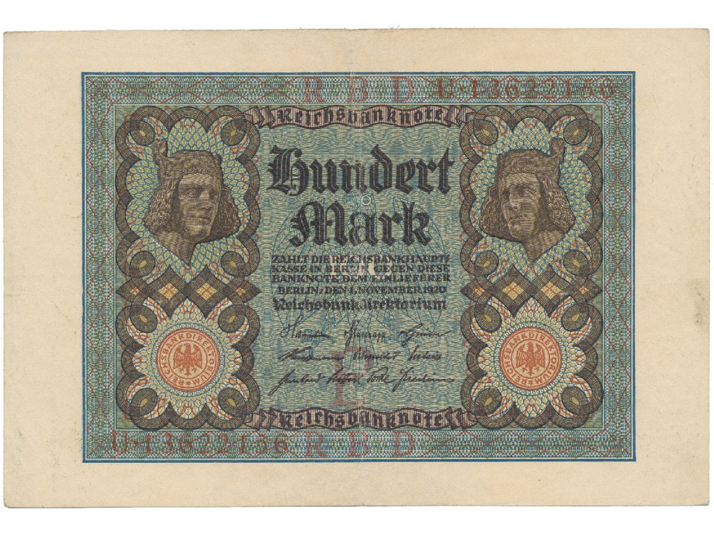 Německo, 100 Mark 1920, 8-místný číslovač, Ro.67b
