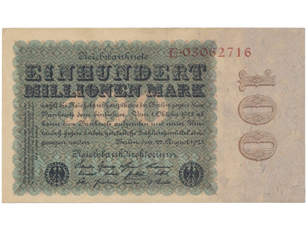 Německo, 100 Millionen Mark 1923, Eichenlaub, Ro.106a