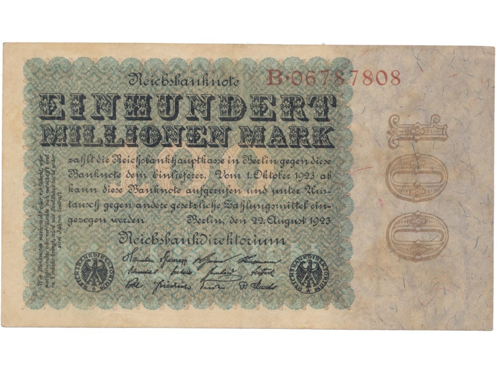 Německo, 100 Millionen Mark 1923, Eichenlaub, Ro.106a