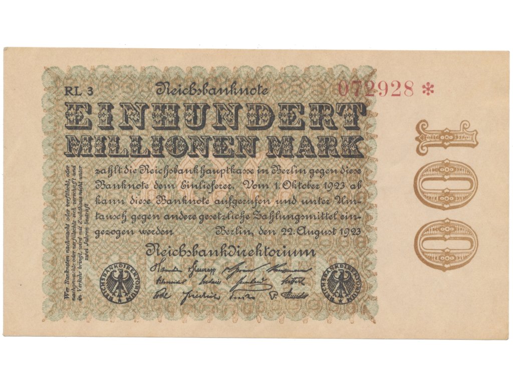 Německo, 100 Millionen Mark 1923, Hakensterne, Ro.106l