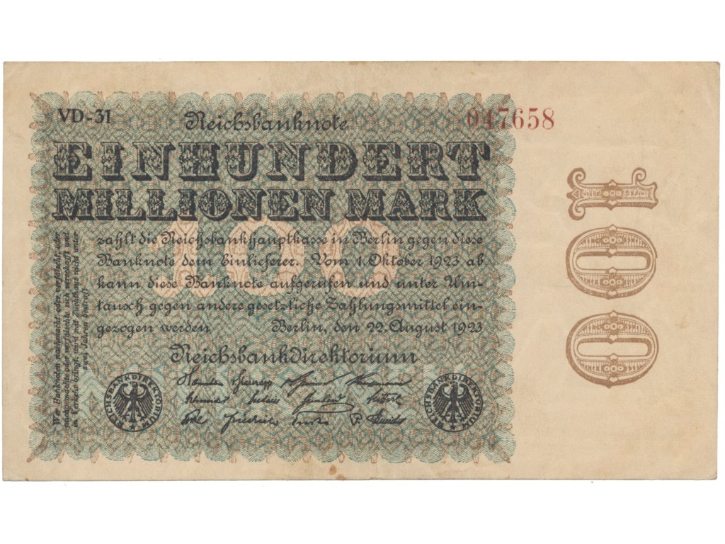 Německo, 100 Millionen Mark 1923, Hakensterne, Ro.106l