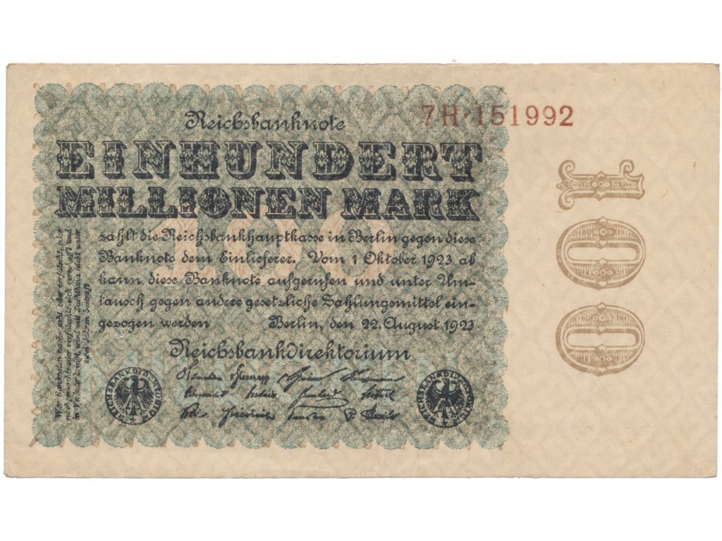 Německo, 100 Millionen Mark 1923, Kreuzblütten, Ro.106e