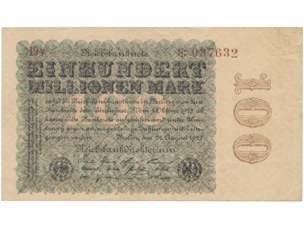 Německo, 100 Millionen Mark 1923, Kreuzblütten, Ro.106e
