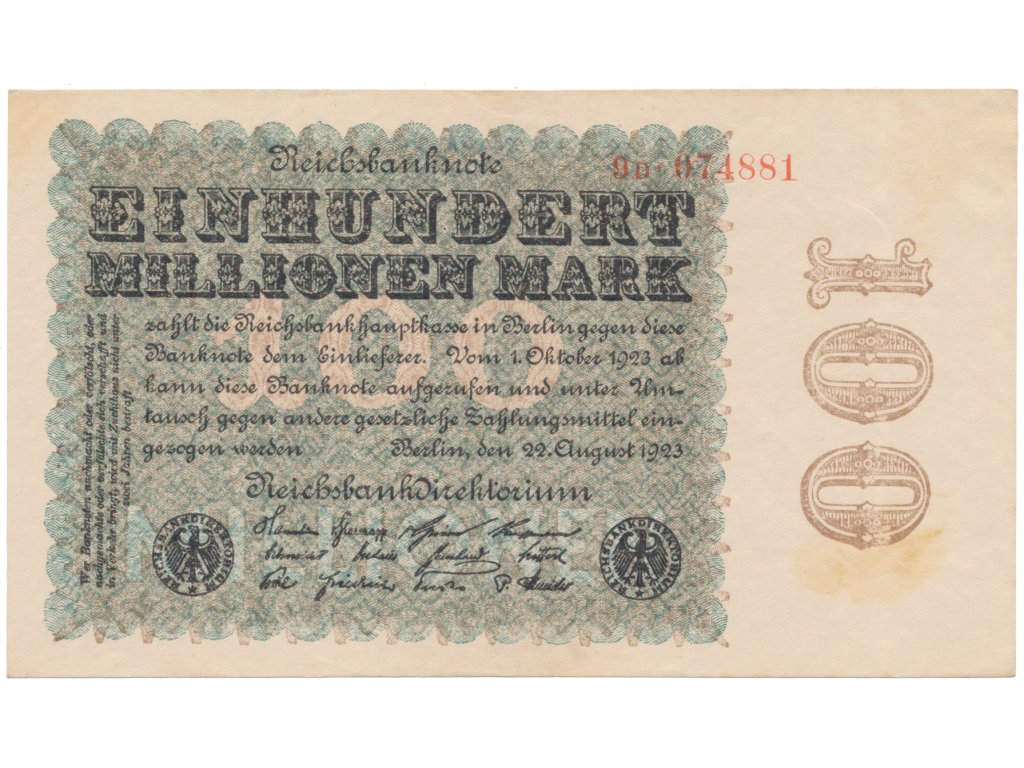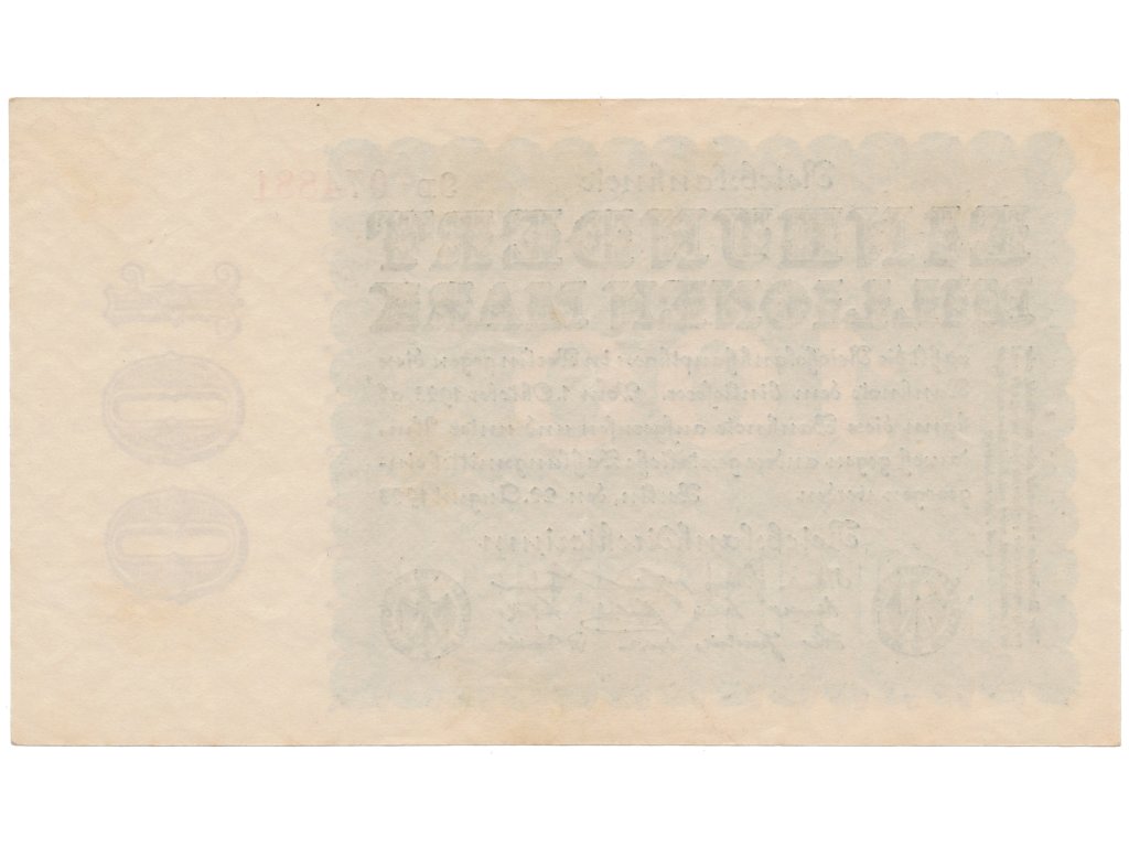 Německo, 100 Millionen Mark 1923, Kreuzblütten, Ro.106F
