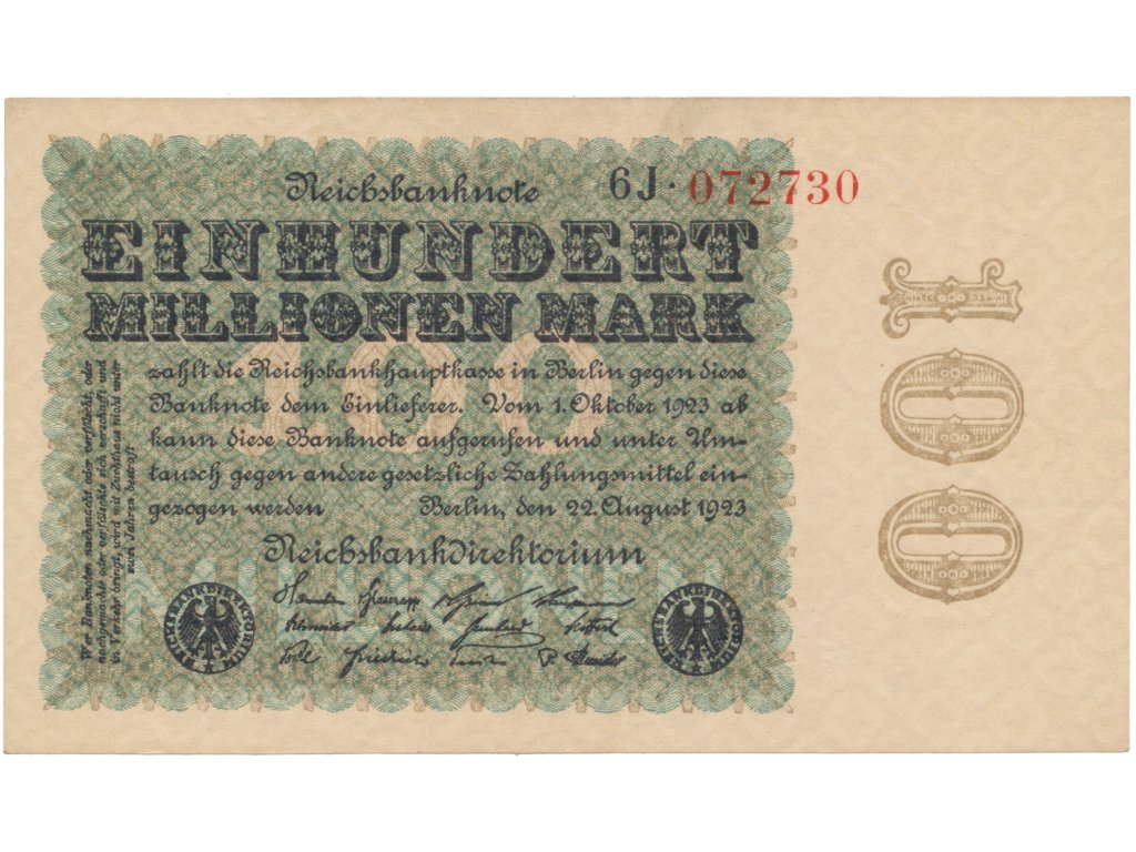 Německo, 100 Millionen Mark 1923, Kreuzblütten, Ro.106h