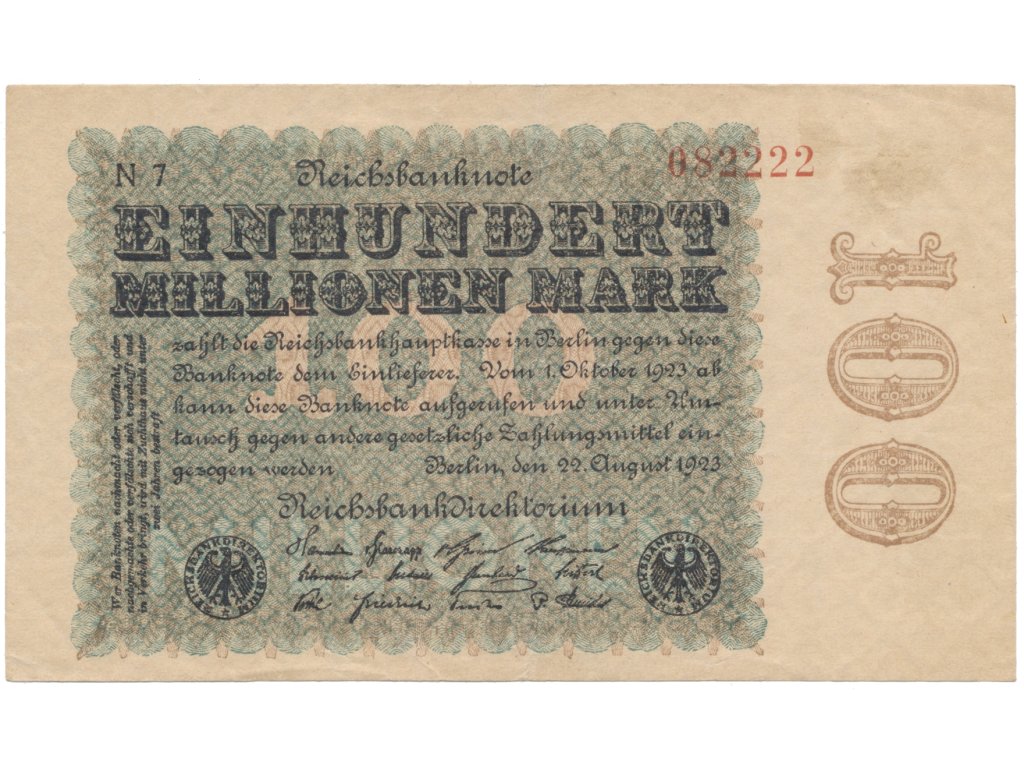 Německo, 100 Millionen Mark 1923, Kreuzblütten, Ro.106h